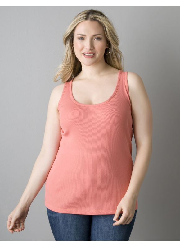 Lane Bryant, available in Plus Size. A wardrobe classic, this scoop neck muscle tank top is ultra soft and versatile! Color: HOLLYHOCK